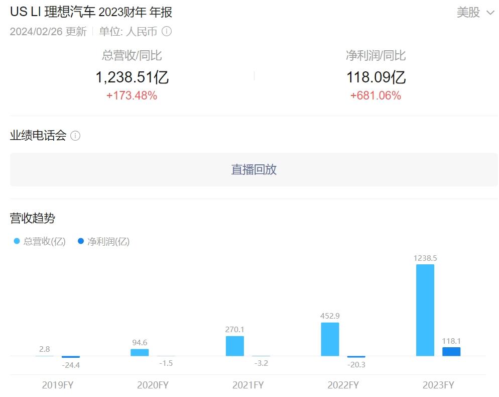 2月26日,理想发布了2023年Q4及全年业绩,在这份李想本人盖章认定的“史上最佳财报”里,理想过去一年营收1238.5亿、同比增长173.5%;净利润118.1亿,现金流储备1036.7亿元。