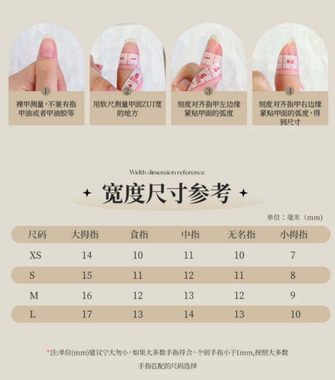 初期,机器款确实靠低价杀出了一片下沉市场,但随着越来越多消费者对穿戴甲上瘾,手工款逐渐成为主流,甚至价格比肩美甲工作室的私人定制款,也成了有着更精致需求的消费者的新选择。目前市面上最流行的,是手工款穿戴甲,有着3-4种尺寸分码,既平衡了制作成本,也能贴合不同消费者的指甲大小。