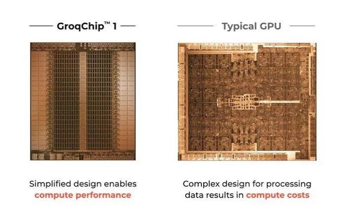 Groq表示正是“受到软件优先思维的启发”更新了芯片架构,针对串行任务优化,并消除了芯片中的无关电路。这种设计与GPU形成鲜明对比,GPU就像一个大型的工作车间,工作人员穿行于不同环节处理工作。LPU则提供了一条装配线,可以以顺序的、有组织的方式处理数据任务。