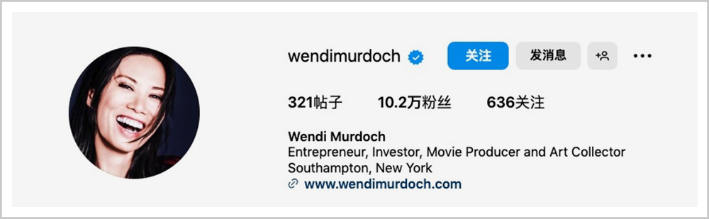 而且,她说到做到,甚至还愿意为前夫拉红线。一直到现在,和默多克离婚快10年了,邓文迪的社交账户名仍然是Wendimurdoch。