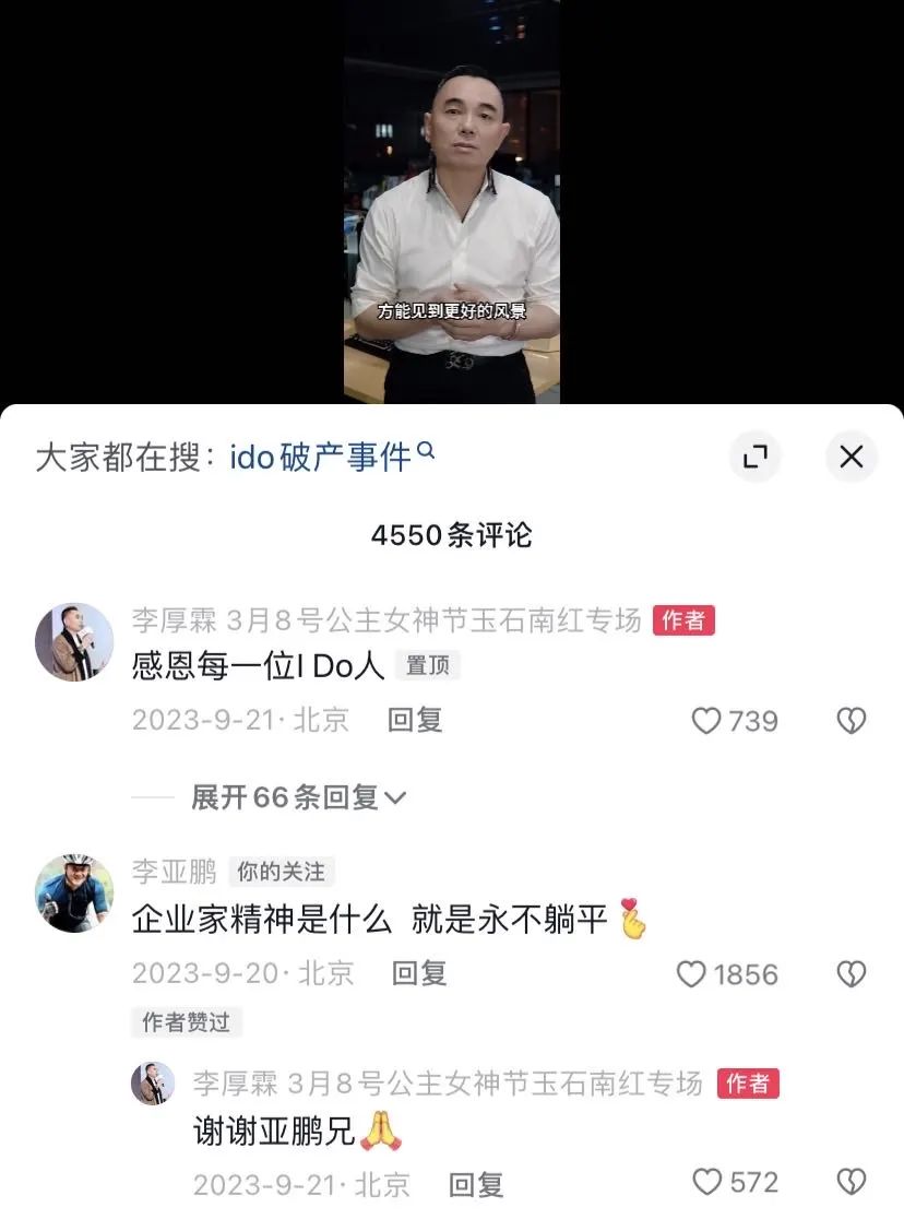 2023年1月份,李厚霖的珠宝品牌I Do母公司恒信玺利实业股份宣告破产重组。2023年7月,是李厚霖和李亚鹏的艰难时刻。李亚鹏面对“4000万元债务”,而李厚霖因欠款超过260万而被列为失信人。