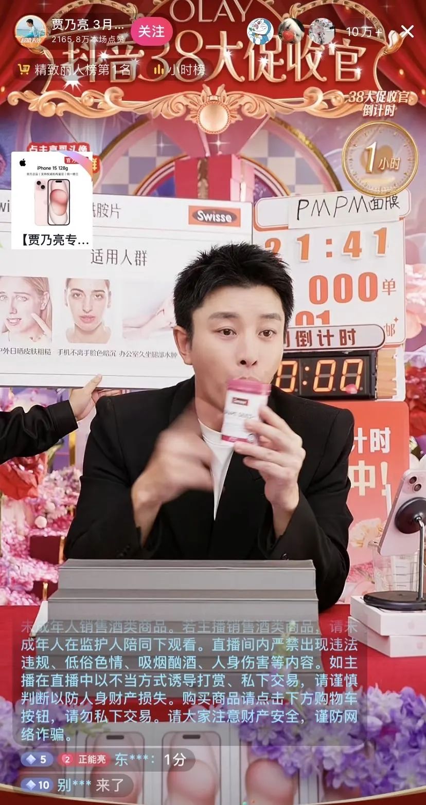 当下抖音38大促的节点,李亚鹏和李国庆均缺席了这场大促。收官当天,从早上九点开始,贾乃亮就在直播间声嘶力竭介绍产品,一直吼到晚上下播;同样在播的还有李厚霖的直播间,只是在线人数不如贾乃亮的10万+,人数峰值不到1万。李国庆和李亚鹏的直播间则静悄悄。