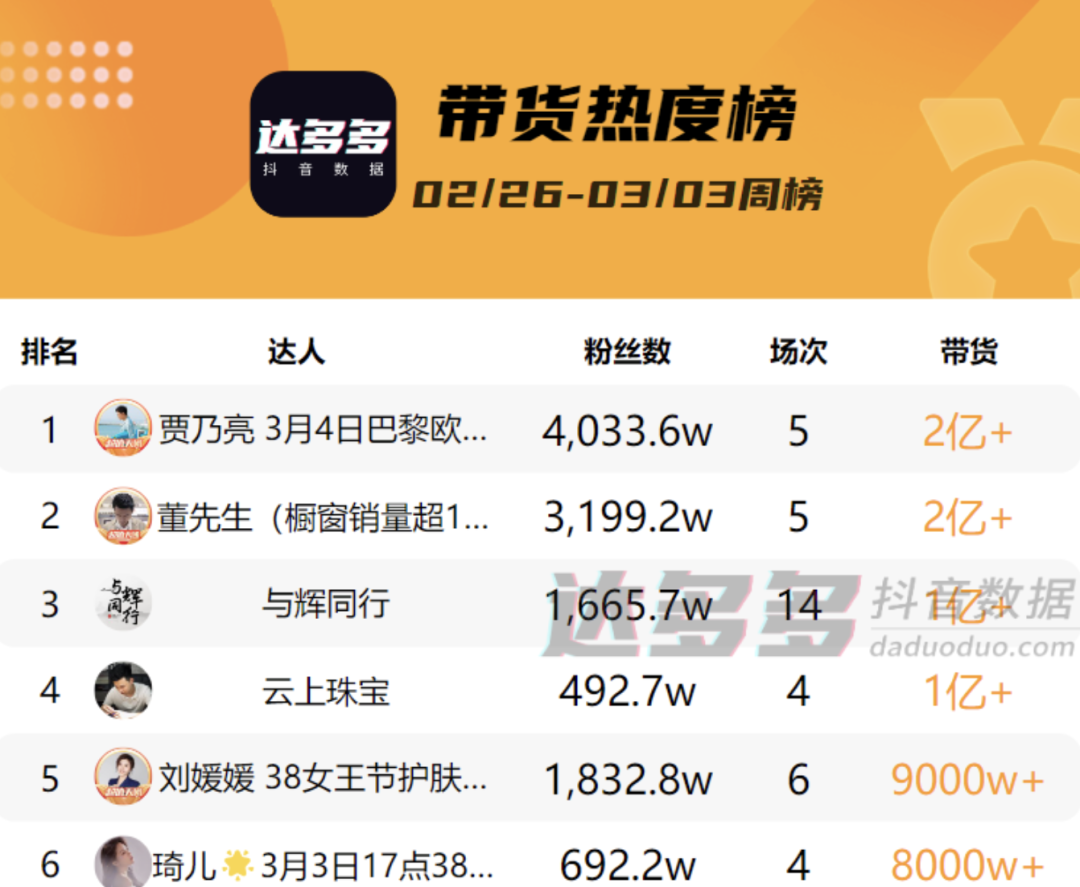 哭哭啼啼之间,李厚霖一举奠定了自己在直播带货界的地位,首播超千万销售额,1月份带货1亿+,3月6日一天带货1000万-2500万元。