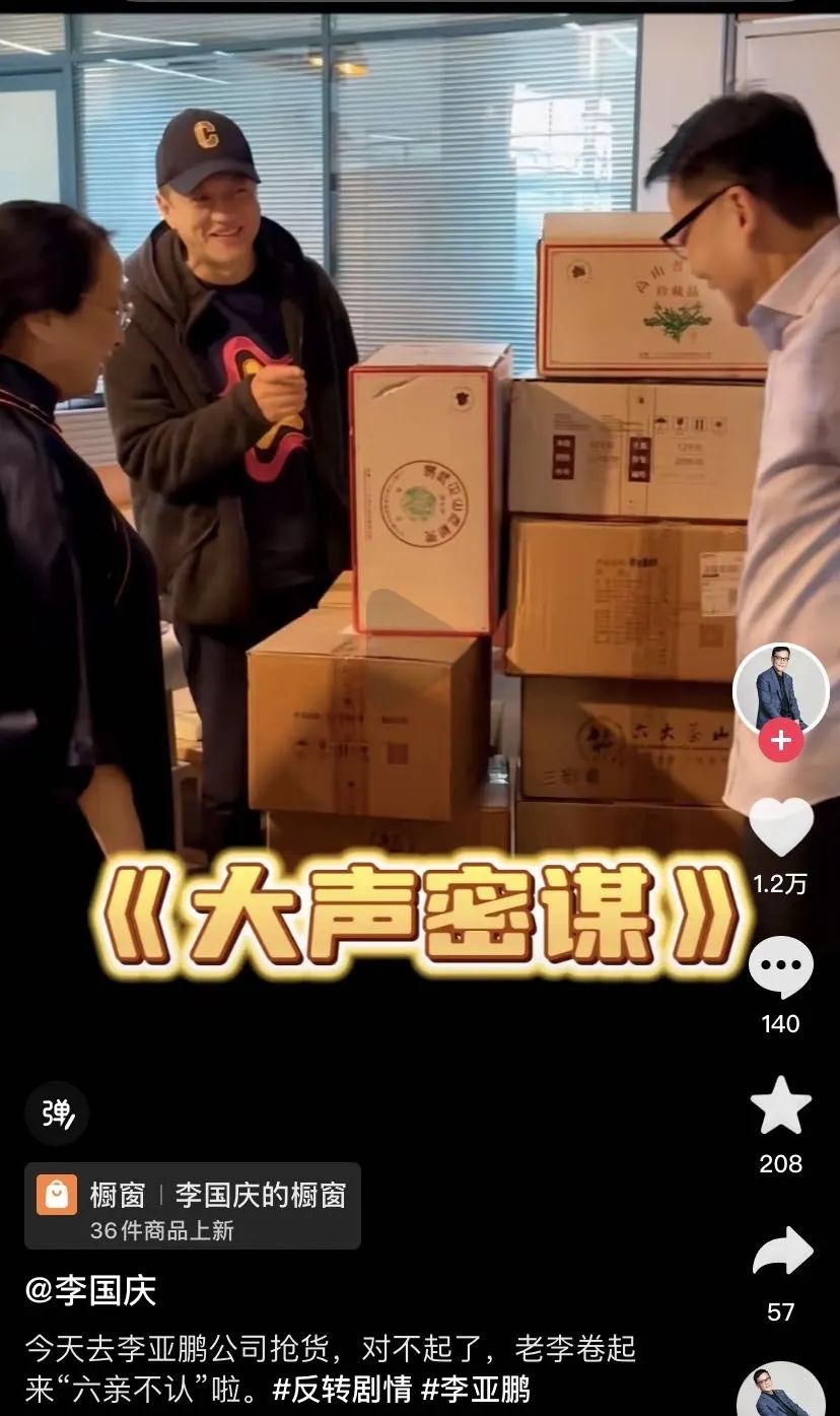 李国庆则在线上互夸之外,直接和李亚鹏线下“唱双簧”。在抖音视频中,李国庆现身李亚鹏公司,直呼李亚鹏太卷,卖茶都到双十一的第一名,并要拉一车茶叶走。眼尖的网友当时就已发出赞叹:庆子这演技,比演过戏的都好。