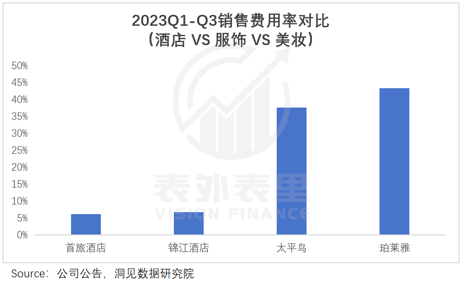 如下图,酒店的营销费用率普遍只有个位数,而服饰美妆超过30%的比比皆是;在业务未成熟的情况下,抖音也不可能贸然提高佣金率,收入注定有限。