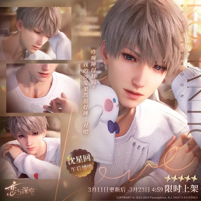 这次白色情人节的“眸光照映处”活动是《恋与深空》开服以来的第六个卡池了。