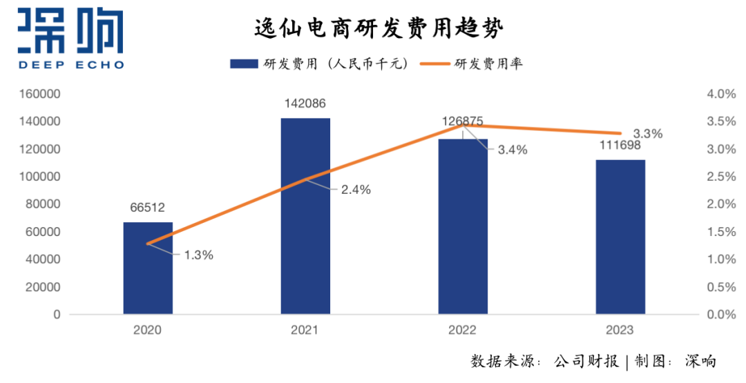 在“长”这一方面,2023年全年研发费用为1.1亿元,全年研发费用率为3.3%,已与欧莱雅2023年的研发费用率不相上下。值得强调的是,财报中逸仙电商也明确表示在“努力将研发费用相对于总净收入的比率维持在合理水平”,换句话说这也是在克制和平衡,不给公司短期业绩表现造成太大压力。