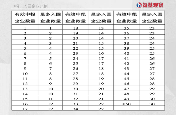 最终,根据价格进行排序,决定入围企业数量,至多入围数量为30家。