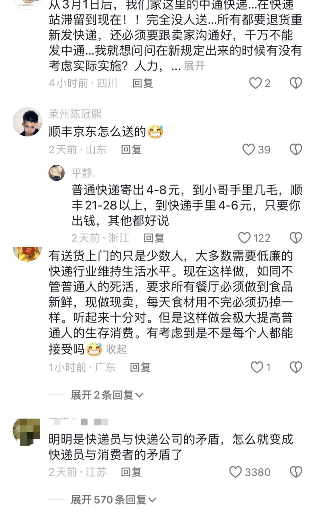 快递配送质量的本质是电商卖家的物力成本和消费者的客单价。既要又要的口号很迷人,但你注定不能同时拥有美国的人均居住面积、欧洲的年均工作时长、中国的服务业价格和英属维尔京群岛的所得税率。