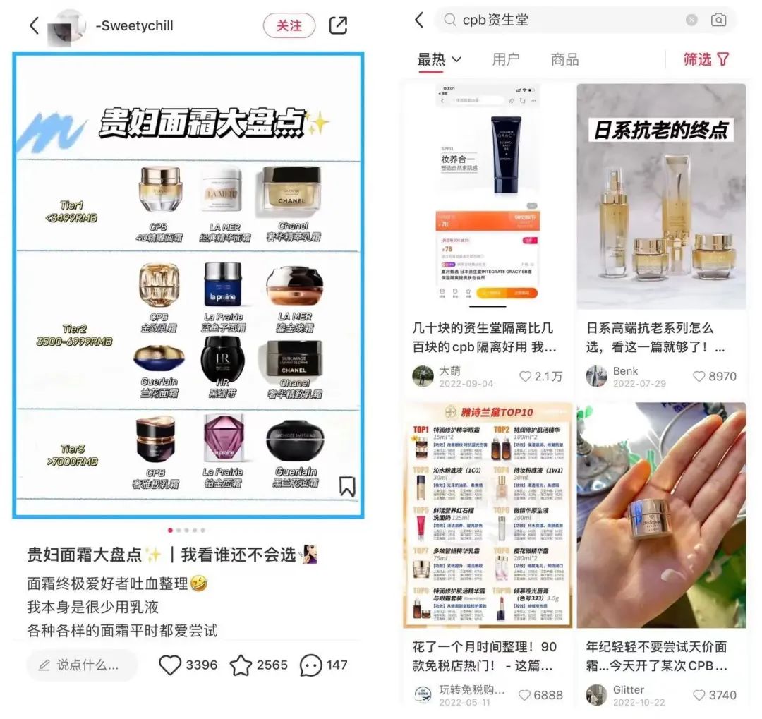 这批率先用上日本贵妇同款的消费者,同时也是新一代的生活方式KOL,在她们的奔走相告中,CPB的自来水广告充斥着代购的朋友圈。