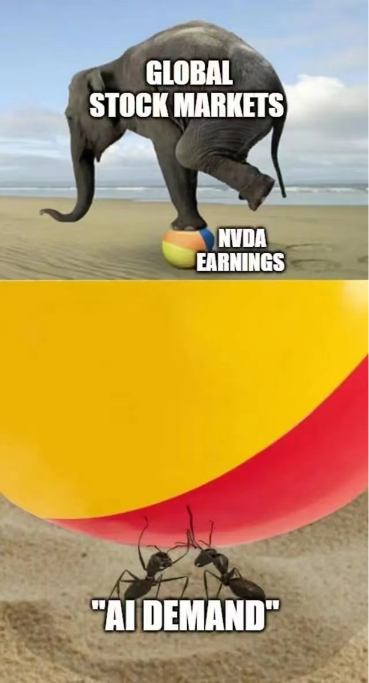等于给市场一个定心丸,2025增长有确定性,大家不用担心训练需求越来越集中于头部客户的风险,而且也暗示了英伟达一个新的可能更大的增长曲线。始终能够用业绩证明自己的价值,股价的支撑力度就会进一步加强。