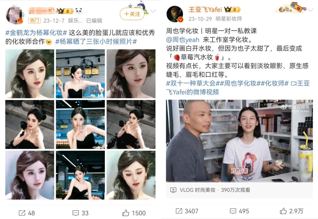 在微博这一公域社交广场,成熟的星粉生态与对美妆、娱乐话题高度关注的泛人群交互,共同拉长了爆款妆容的发酵期,小红书的美妆氛围强化着妆造师个体的IP价值,将对妆容感兴趣的泛人群牢牢吸引;共同助力着明星化妆师业务量的增加。