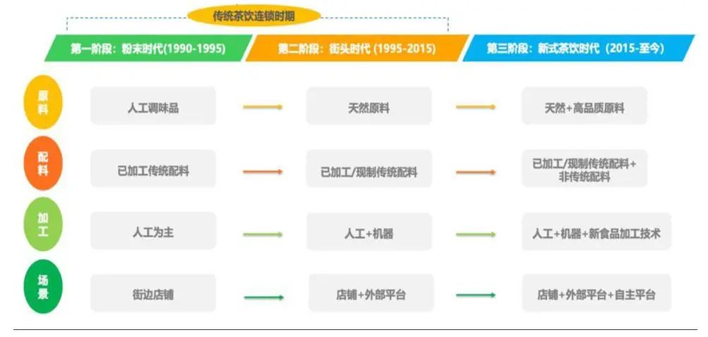 古茗问世于2010年茶饮行业的“街头时代”,在此阶段,出现了中端茶饮店,该类茶饮店是以茶基底制作奶茶,但前期还是以粉末勾兑为主,后期逐渐用鲜奶代替。主要使用的原材料为罐头水果、果酱及调味糖浆、碎茶及奶精,代表产品为风味奶茶。