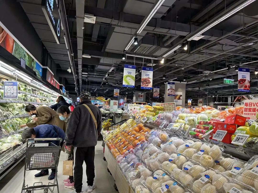 他们走进盒马的原因,是听说盒马降价了,有些菜比菜市场还便宜,所以来看看。