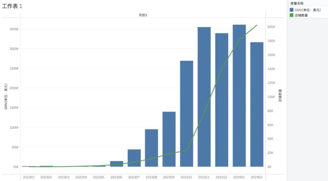 根据特看科技数据,2024 年 1 月及 2 月,美区的 GMV 分别是 3.6 亿美元和 3.2 亿美元,即便是到了 2 月份的淡季也和前一年在大促加持下的 11 月和 12 月产生的 GMV 在相同水平,看得出开年后美区的创收能力快速提升。
