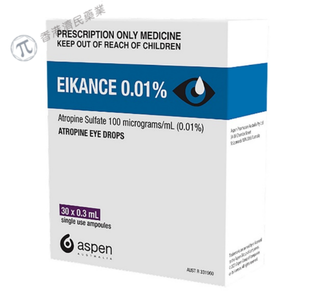 2022年3月17日,澳大利亚治疗用品管理局 (TGA) 已批准Eikance0.01% 滴眼液,即0.01%硫酸阿托品滴眼液,用于减缓儿童和青少年近视的发展。