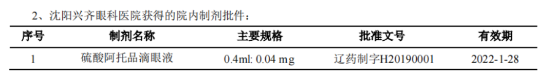 2019年1月,兴齐眼药控股子公司沈阳兴齐眼科医院取得了硫酸阿托品滴眼液的《医疗机构制剂注册批件》,据此,公司可以销售“仅本医疗机构内使用”的低浓度硫酸阿托品滴眼液。据了解,国内至少有数十家医院先后获得了同样的批件。