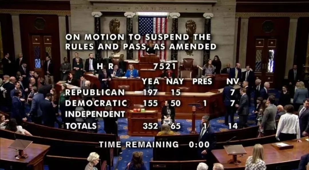 投票结果为352:65,法案的支持者暂时取得了压倒性的胜利,但法案若想正式生效,接下来还需经过参议院的投票,以及美国总统拜登的签署。