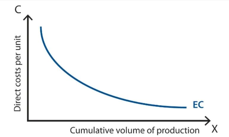 Brett:如果我们回顾消费品或汽车行业的发展历史时,可以看到产品的价格与生产量之间存在强相关。根据经验曲线(Experience Curve),每当生产数量翻倍,产品的价格或成本就可能下降 20%或 30%。因此,我们可以认为价格取决于生产量。