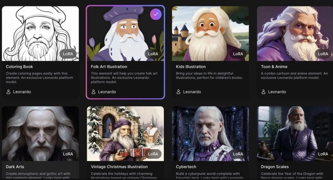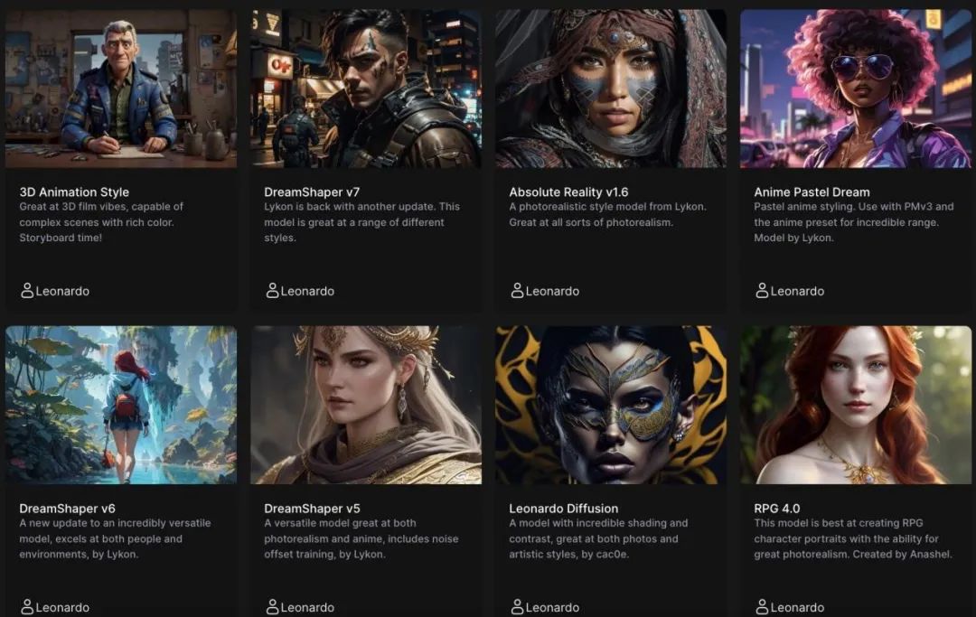 在 Leonardo.ai 中就有适应 3D 动漫、游戏、动漫等多种生图风格的 Checkpoint,注:Checkpoint 是经过 fine-tuning 的 Stable Diffusion 模型,以生成特定风格的图片