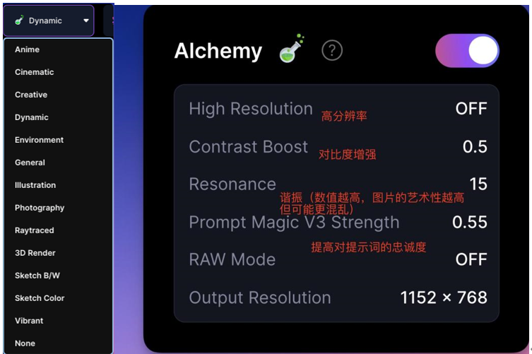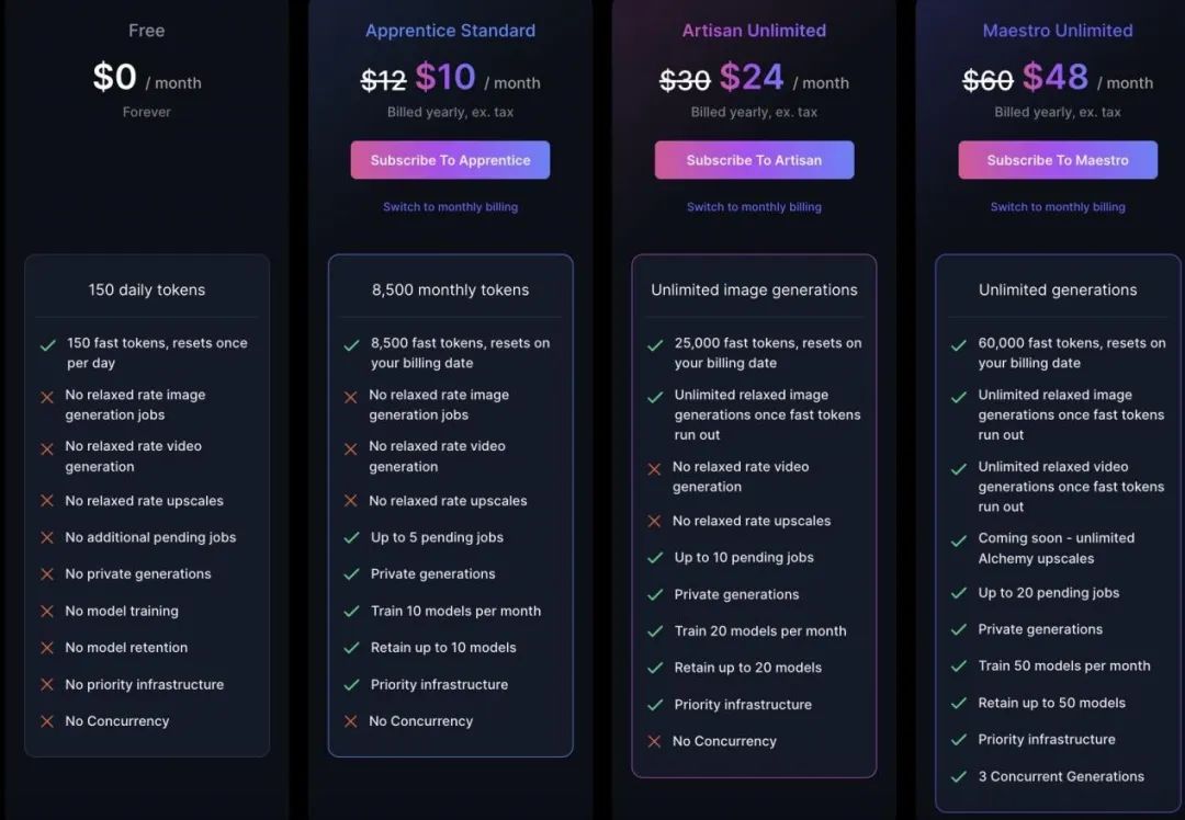 Alchemy 功能,该功能需要订阅 Leonardo.ai 才能使用,订阅价格 12/30/60 美金/年|图片来源:Leonardo.ai 帮助文档