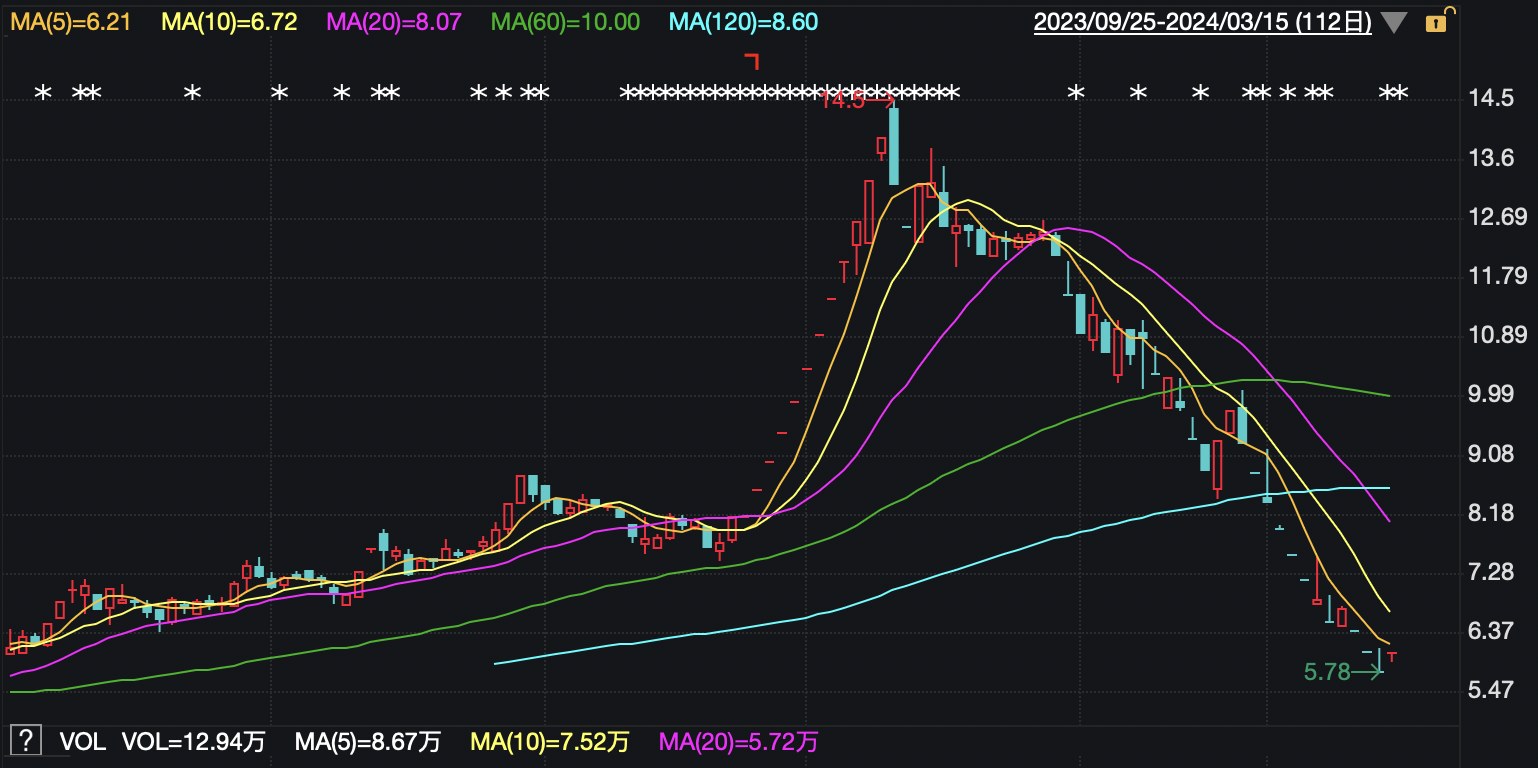 公司的退市风险也反映在股价上。自1月31日披露业绩预告以来,*ST商城频频跌停,股价从11.53元下挫至3月15日的6.07元,一个半月内已经近“腰斩”。