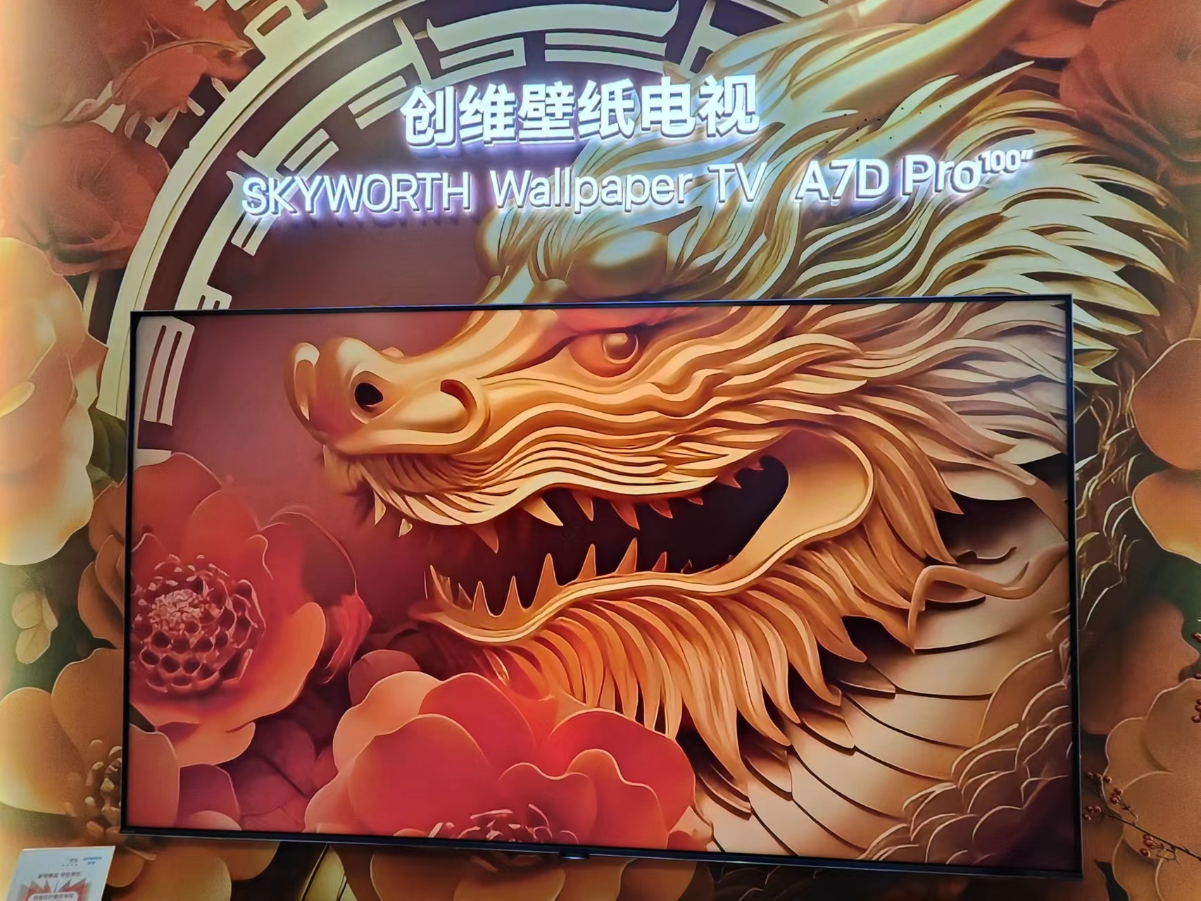 在创维展馆,“壁纸电视”这个概念吸引了不少人,创维100英寸的大屏电视和背景墙融为一体,超高屏占比下,带来了很强的视觉冲击力。比较类似的是,长虹也带来了壁画电视的概念,它的特点在于把各个部件做成了隐藏式设计,做到了六面纯平,无论哪个角度看都能感受到高颜值。