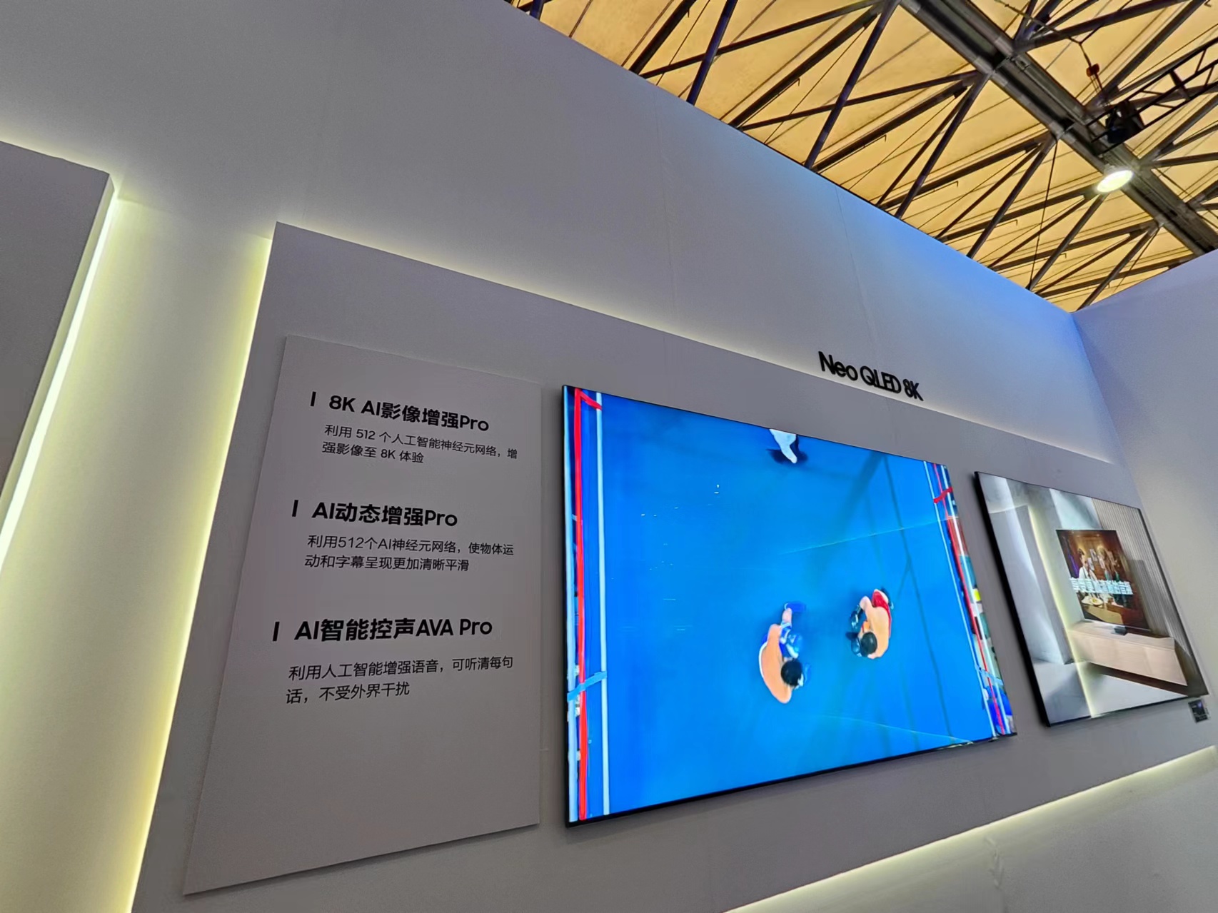 除了在最核心的面板上画质上秀肌肉,今年AWE电视展品的另外一大看点自然是AI。