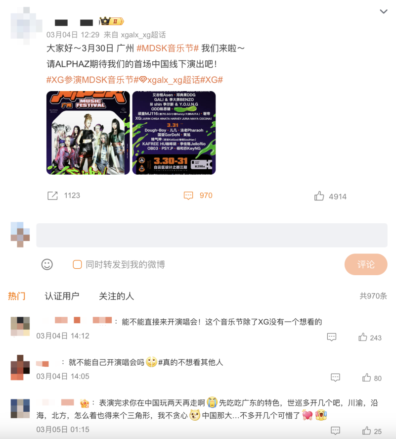 而且这些被邀请上音乐节的国际音乐人很多都是全球有知名度、或者近两年在亚洲有高人气的艺人。很多粉丝表示“XG能不能开自己的演唱会”、“太牛了,仙人掌居然把Fall out Boy都请来了”。