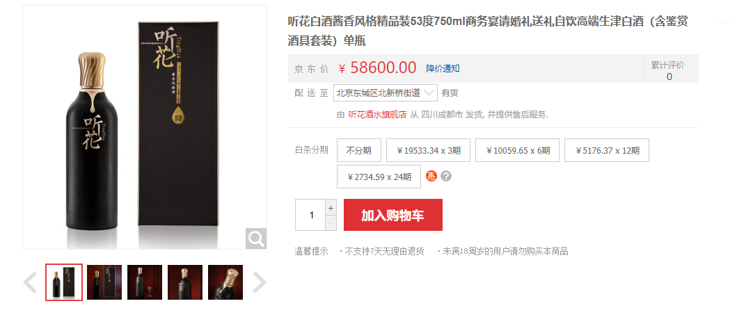两年前,听花酒的定价就是“标准装售价5860元,精品装售价58600元!”