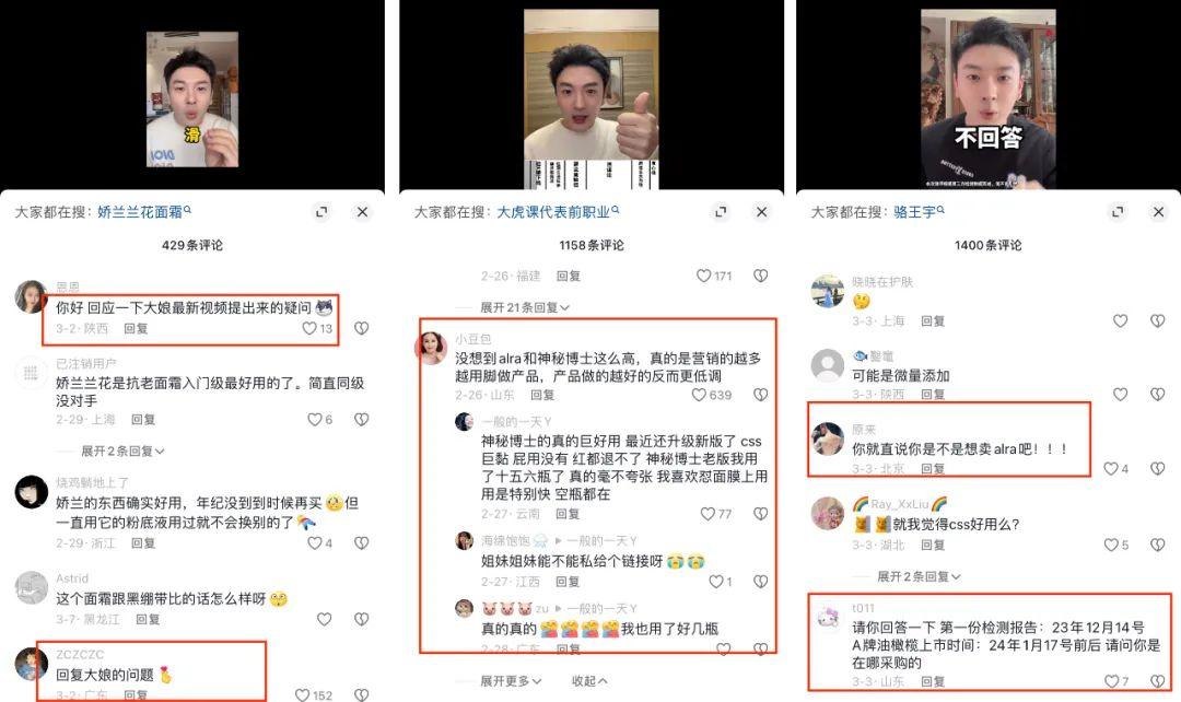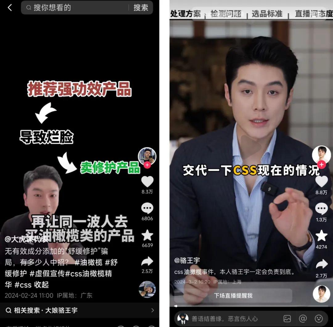 有趣的是,爆料者“大虎课代表”似乎是这场舆论的唯一“赢家”。他本人因为“CSS事件”人气大增,且其“打假CSS橄榄油”第一期视频的点赞和评论量达到了新高,还有很多新晋粉丝居然还都是从骆王宇的道歉视频跳过来的。