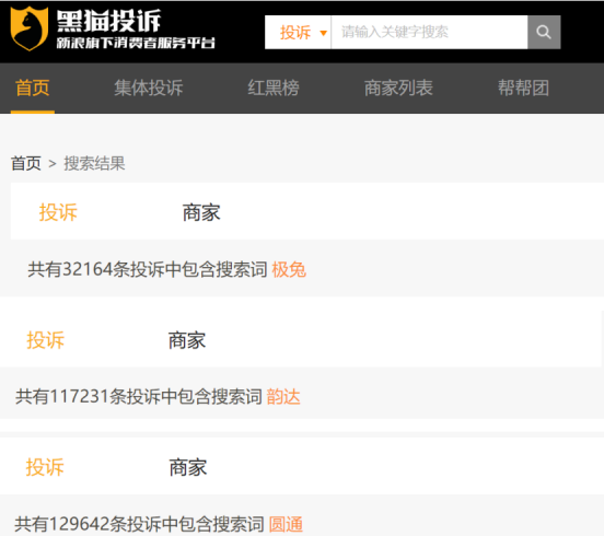 近几年来,我国快递业投诉量不断增长。黑猫投诉平台内,仅进入国内市场4年的极兔的投诉量高达32164条,韵达为117231条、圆通为129642等。