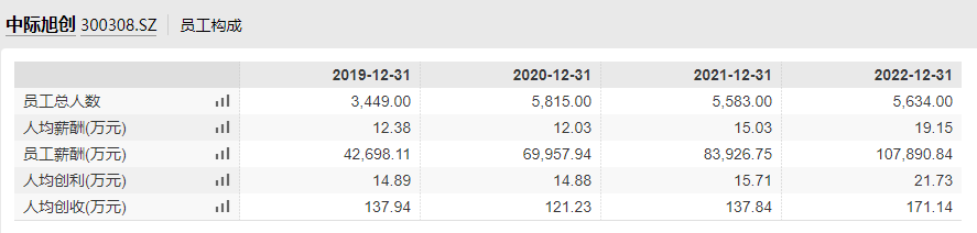 效率方面,简单的从人均创收角度来看,在2022年,中际旭创的人均创收就高达170万元,到2024年更是有望超过人均300万元,从人均创收角度也实现了对Coherent的超越,而旭创的人均工资据估计只有Coherent的1/3不到;工程师红利得到了淋漓尽致的体现。