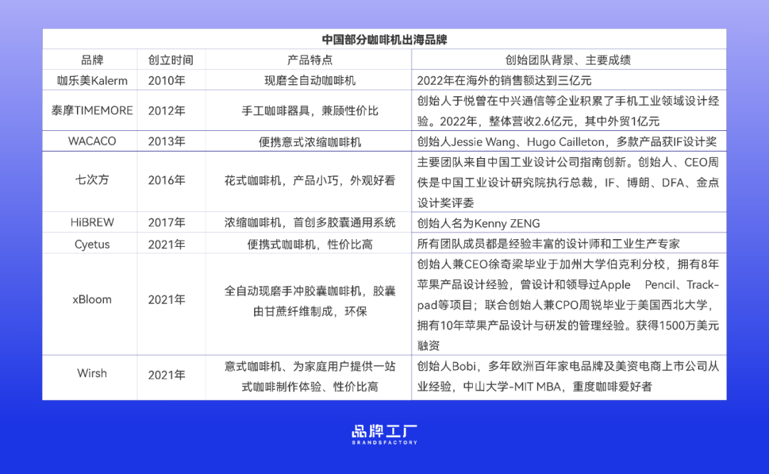 近年来,随着跨境电商行业的兴起,中国咖啡机开始以品牌的形象走向世界,譬如TIMEMORE、Cyetus、Kalerm、HiBREW等品牌纷纷走向海外市场。在速卖通总结的2023年跨境电商年度十大热卖商品中,咖啡机与扫地机器人、宠物用品一起,排在前三位。