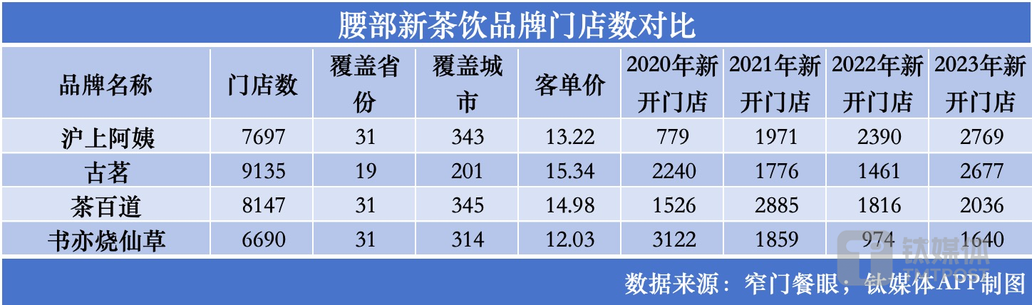 而截至2024年3月2日,古茗、沪上阿姨、茶百道门店数进一步增至9135家、7697家、8147家,书亦烧仙草门店数则降为6690家。