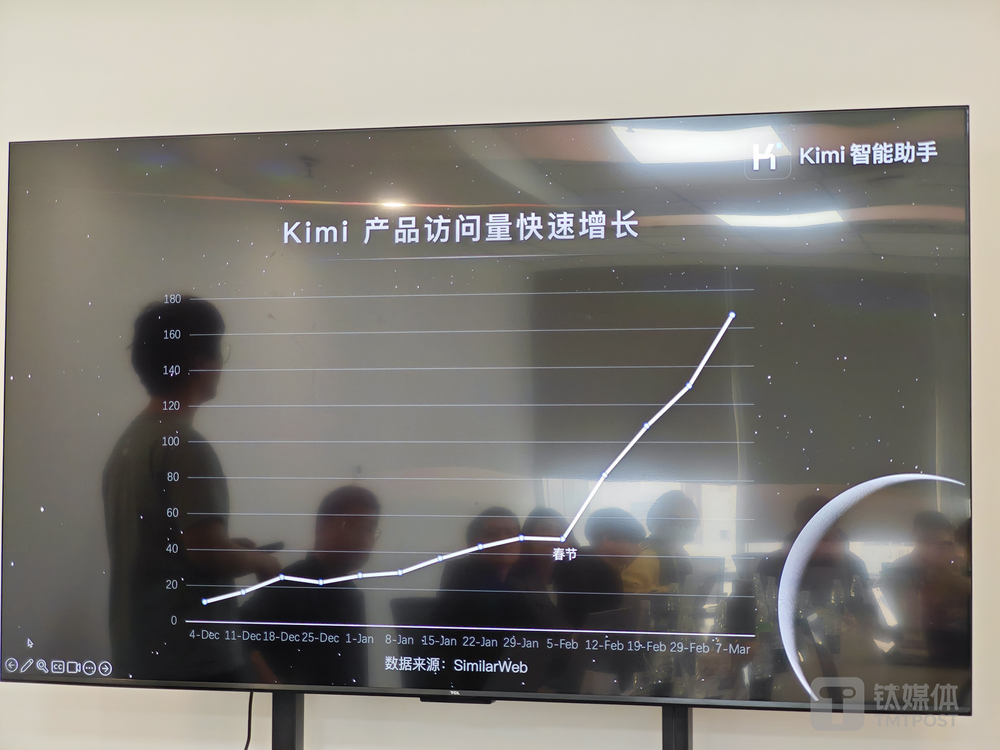 许欣然表示,目前Kimi平均每个月可能都有100%以上的增速。