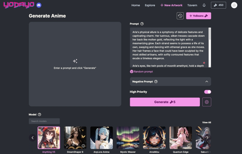 趣味性,强调产品用户界面和功能。比如Yodaya,一款设计生成高质量动漫形象插图的艺术类AI应用,用户只需要输入形象特征,Yodayo就会自动生成匹配的动画图像。精美的图像、极具趣味性的界面吸引了广大二次元网友注册使用。