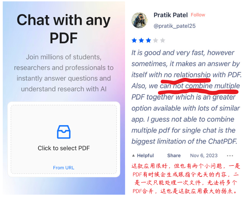 作为一款主打PDF要点提炼的问答型AI产品,ChatPDF曾经以免费翻译、总结、提炼PDF要点闻名于学术界。具体来说,ChatPDF可以帮助人们提炼学术文章中的要点,用户可以在问答互动中快速掌握文章大意,极大提升了学术研究、办公工作的质量与效率。