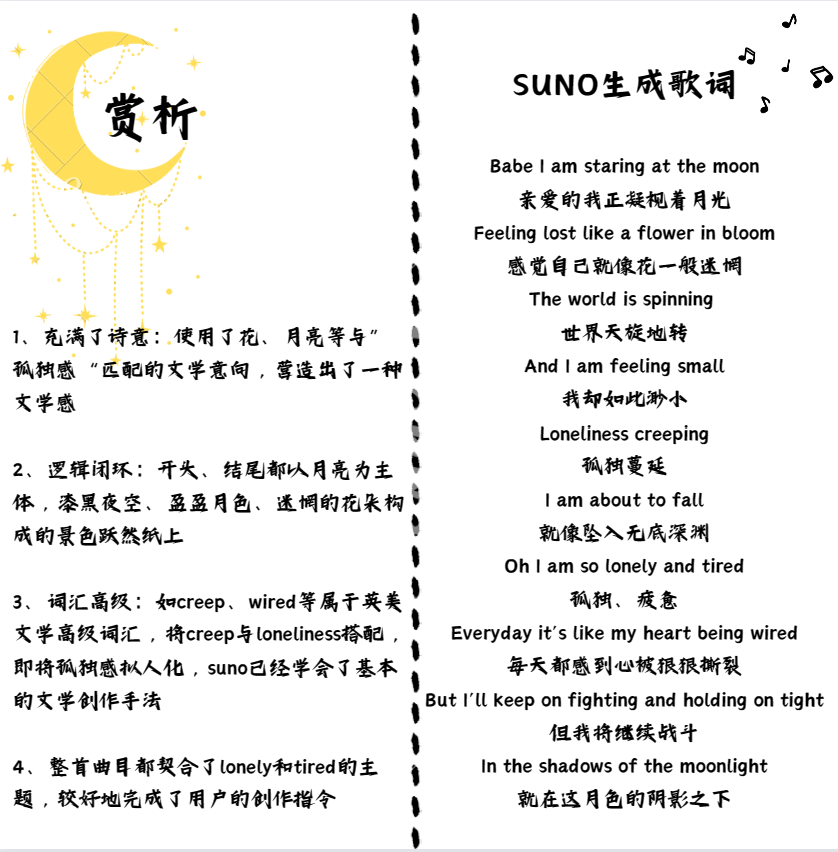 比如,当用户在指令框输入了“I feel so lonely and tired(我感到如此孤单疲倦)”。Suno便自动生成了一段50s带人声、旋律、歌词 的demo。