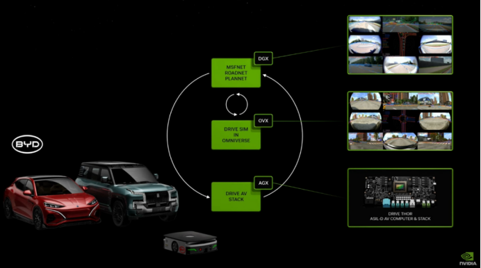 据统计,多家头部电动汽车制造商展示了其基于英伟达最新技术的下一代AI车型,其中包括比亚迪、广汽埃安、小鹏、理想汽车和极氪等众多中国车企。另外,像宁畅等国内企业也根据英伟达的最新技术,提供了自动驾驶模型训练与仿真解决方案。