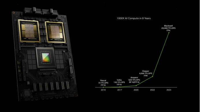 它通过对每个神经元使用4位(20 petaflops FP4)而不是8位,直接将计算能力、带宽和模型参数规模翻了一倍。