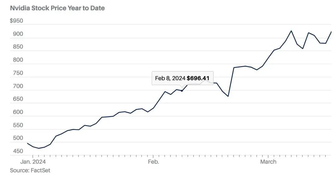2023年1月时,英伟达股价最低点仅为142美元,到今年3月,股价最高点一度到达926美元。一时风头无两。去年12月底,英伟达在经纪公司分析师最喜欢的股票排行榜上,名列榜首。