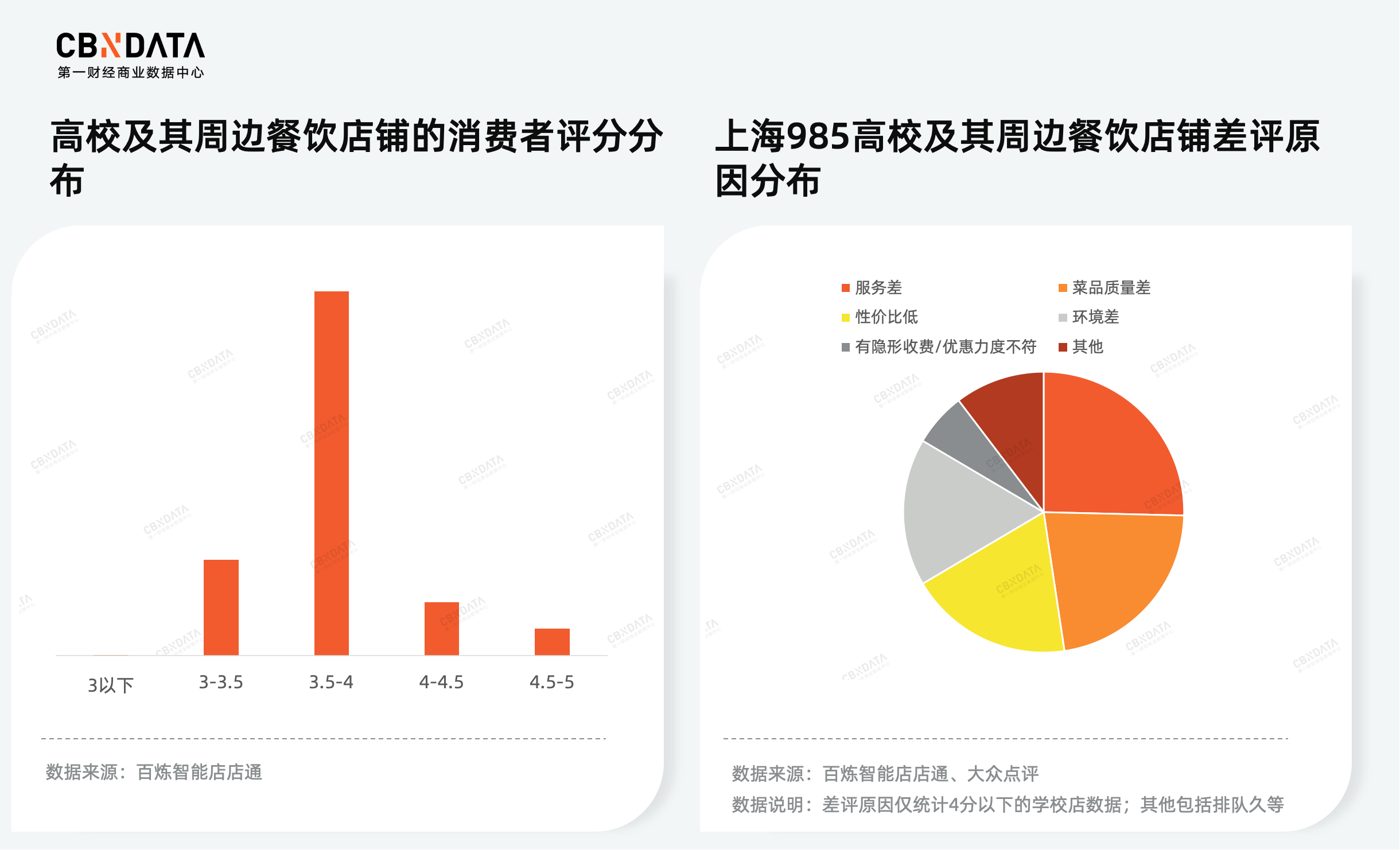 从结果来看,高校周边店铺的消费者评分普遍不高,大部分店铺的评分介于3.5-4之间。在差评原因中,服务质量差、菜品质量低以及菜量少等性价比问题是主要的被消费者吐槽的方面。而这,或许也是连锁餐饮品牌可以持续提升服务空间的机会所在。