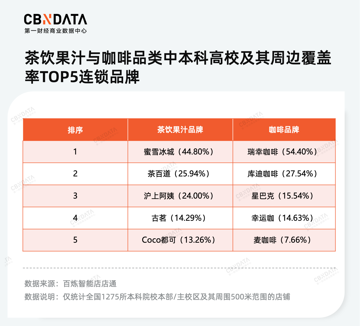 那么,当前高校及其周边的餐饮店铺呈现何种品类态势?哪些品牌在这一市场的布局最为广泛?此外,高校店铺又面临哪些挑战?为了解答这些问题,CBNData利用百炼智能店店通数据,梳理了3072所主要高校(包含本科院校、高职/专科院校以及成人高等)地址周围500米范围内50余万家校内及校外的餐饮商户信息,大致梳理出了当前高校餐饮店铺的发展格局。