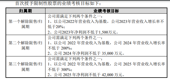 首次授予限制性股票的业绩考核目标为:以2022年的营业收入为基数,2023年、2024年、2025年的营收增长率分别不低于20%、200%、300%。依此计算,2023-2025年,聆达股份的营收目标为分别不低于19.18亿元、47.94亿元、63.92亿元。