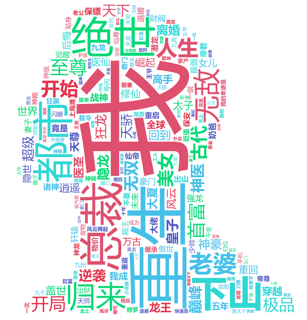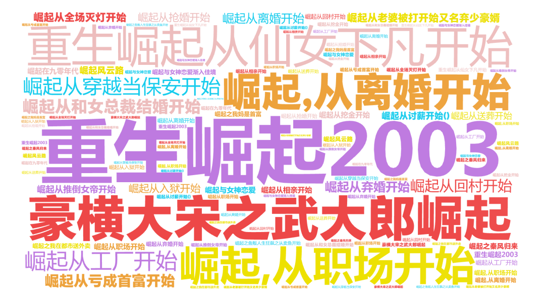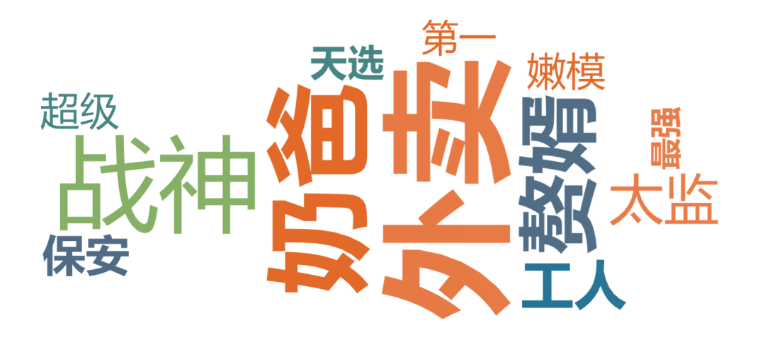 “我”(129部提及,下同)叫郝多余(6)、我爷爷是剑仙(15)、我爸是战皇(17)、赘婿(39)、神豪(49)、九州首富(25),我帮爹地选妈咪(9)。我妈是女王(29)、战神(18)、总裁(53)、世界首富(56)。我舅是高启强(4),我的姐姐是财阀(7),弟弟是亿万神豪(31),我爸带我入赘豪门(25)后,给我找了八个女朋友(3),有一千亿舔狗(9)。(下文的词频大量在5个以下,就不继续展示了,除了极其特殊的词)。