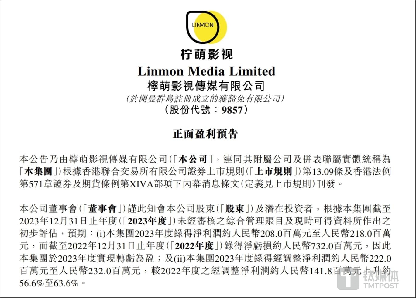 对此,董事会认为,公司2023年度实现录得转亏为盈,且经调整净利润上升的主要原因包括年内本集团版权剧的播出集数增加带来收入增长,全面预算管理成效显现,成本得以有效控制,同时海外业务继续保持高速增长,短剧业务的迅猛拓张亦带来可观的收入和利润贡献。