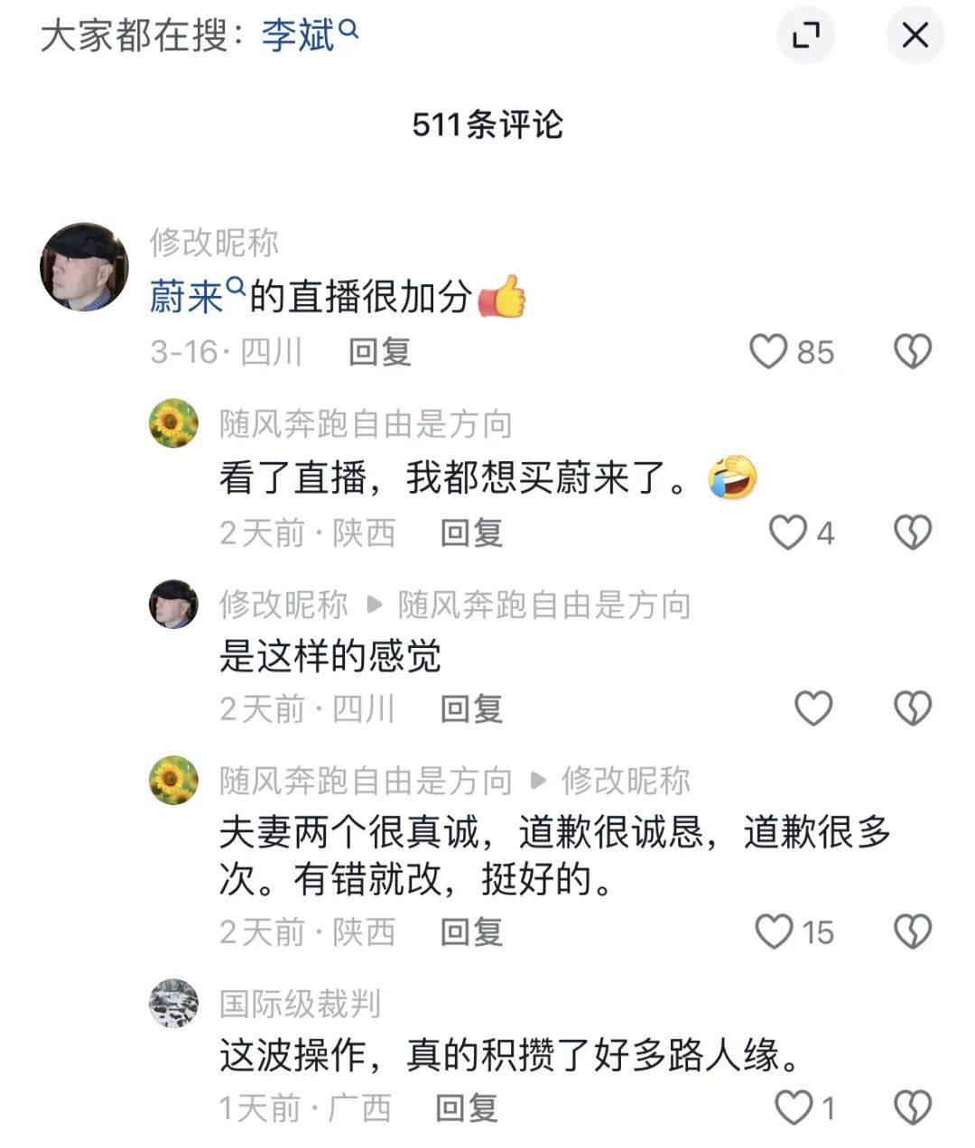 作为新造车三杰中故事最多的一位创始人,李斌在咖位上就天然具有热搜气质,因此当李斌开始在镜头前直播,自然就不会缺少关注度。