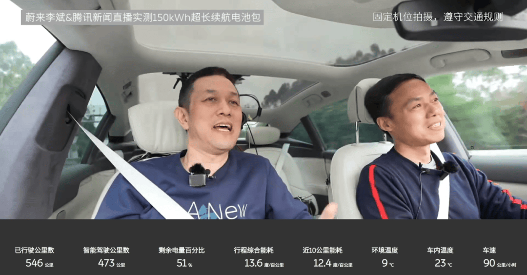 事实上,在李斌通过个人账号直播之前,其已经有过两次小规模的直播尝试,一次是为了测试蔚来的150度电池包而进行的一场马拉松式的直播,李斌和蔚来电源管理副总裁沈斐共同驾驶蔚来ET7从上海开到了厦门,这场直播总时长达到了13个小时。