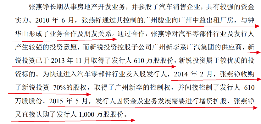 据了解,早在2010年6月,张燕铮通过其控制的广州骏业向大昌科技子公司广州中益出租厂房时,就与钟华山形成了业务合作及朋友关系。